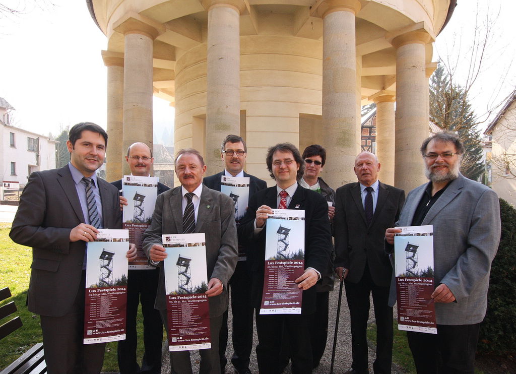 Ab sofort können Musikliebhaber Karten für die diesjährigen Lux Festspiele im Vorverkauf erwerben. Im Beisein von Landrat Reinhard Krebs und den Bürgermeistern von Bad Liebenstein und Ruhla sowie weiteren Kulturpartnern wurden am 14. März 2014 die Karten, Programmflyer und Plakate während eines Gespräches im Kurtheater Bad Liebenstein, eines der sechs Veranstaltungsorte im Wartburgkreis, vorgestellt.